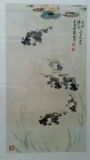 鱼画之美,在于画出鱼尾的动势。潘公画鱼从尾画起,以尾定势,形成独特的鱼画风格。水中婀娜多姿的金鱼,月影中悠然自得的鲤群,追逐嬉戏的花斑鳜鱼,鱼尾处淡墨轻扫,给人以自然飘动之感。不同角度、不同幅度、不同游向、不同动势的游鱼被表现得淋漓尽致;更有那与鱼水相依的蛙、蟹、鸭、白鹭、翠鸟和碧荷红莲、三两绿藻等,疏密虚实、水感极强,令人心旷神怡。