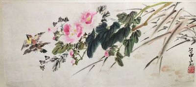 [作品名称:]  花鸟 钱行健合作